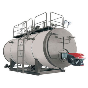 燃?xì)庹羝仩t是我廠根據(jù)國(guó)內(nèi)、外先進(jìn)技術(shù)和經(jīng)驗(yàn)設(shè)計(jì)而成的鍋殼式三回程濕背燃油(氣)鍋爐。鍋爐運(yùn)行自動(dòng)化,燃料經(jīng)燃燒器霧化后,形成的火炬充滿在全波形爐膽內(nèi),并通過(guò)爐膽壁傳遞輻射熱,此為一回程。燃燒產(chǎn)生的高溫?zé)煔庠诨厝际覂?nèi)匯聚,轉(zhuǎn)向進(jìn)入二回程,即螺紋煙管管束區(qū),經(jīng)對(duì)流換熱后,煙氣溫度逐漸降低后至前煙箱,并在此轉(zhuǎn)向進(jìn)入三回程,即光管管束區(qū),隨后經(jīng)后煙箱流入煙囪,最后排入大氣。